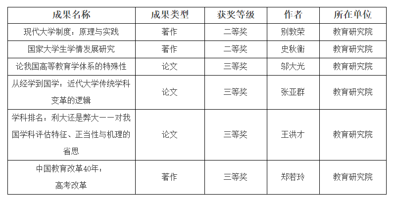 第六届全国教育科学研究优秀成果奖厦门大学获奖名单