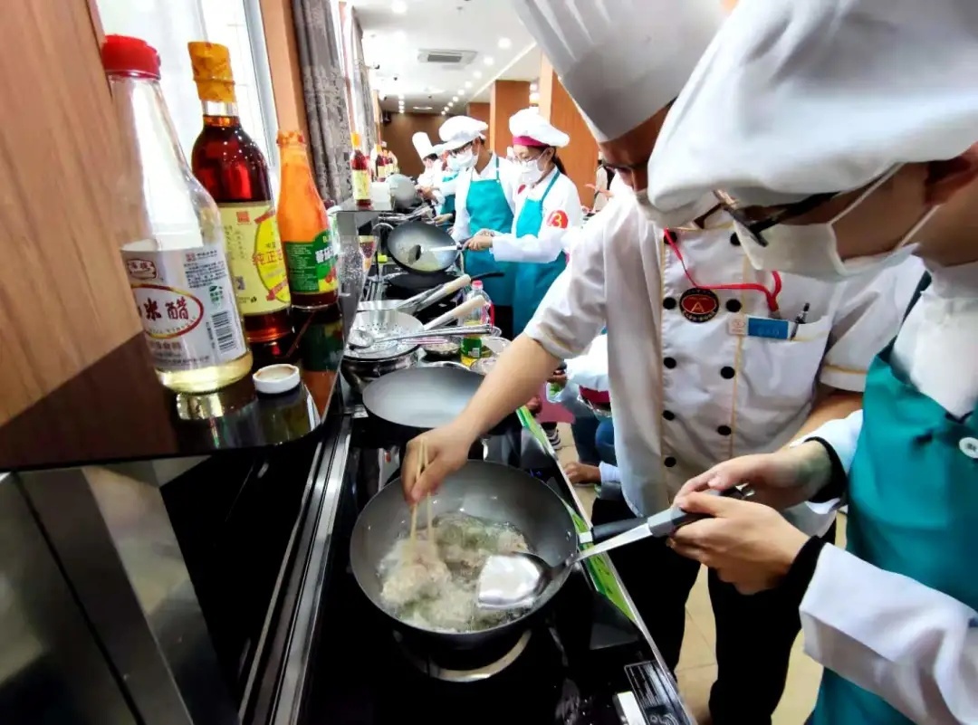 宽敞明亮的餐厅、摆放整齐的菜品、清一色的厨师服……一场别开生面的“厨王争霸赛”正在上演