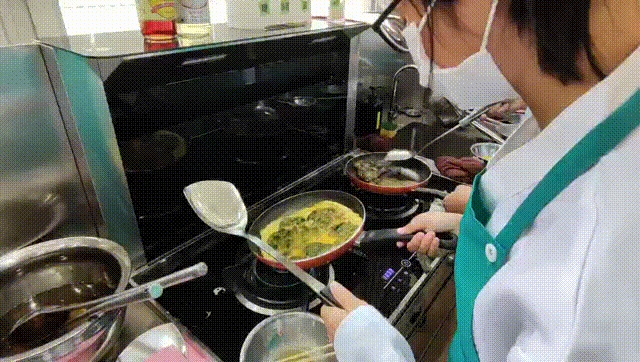有的同学驾轻就熟,切菜打蛋颠锅,都透露出一个“稳”。