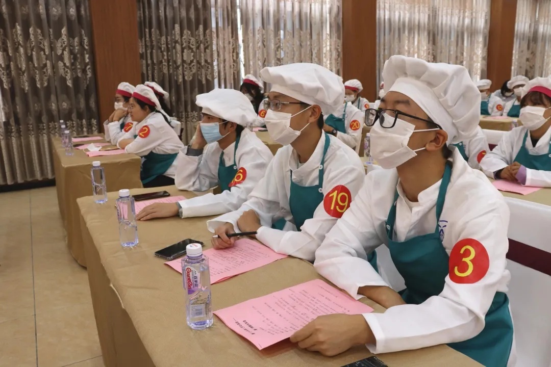 台下同学们聚精会神,认真听讲,记录菜谱笔记也要有严谨精神。