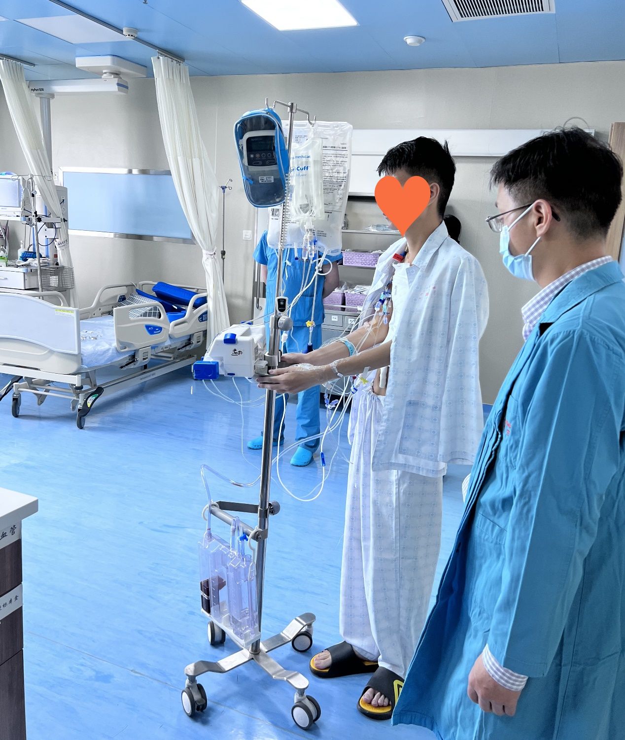 术后两小时,顺利拔除气管插管,术后第一天,小郭已可离床下地走动。此后,小郭在心脏大血管外科进行了为期4周的抗生素治疗,同时加强营养心肌、术后功能锻炼等治疗。4周以后的复查结果表明,小郭已无重大异常,顺利康复。6月2日,小郭在母亲和老师的陪伴下出院,重启充满希望的幸福生活。