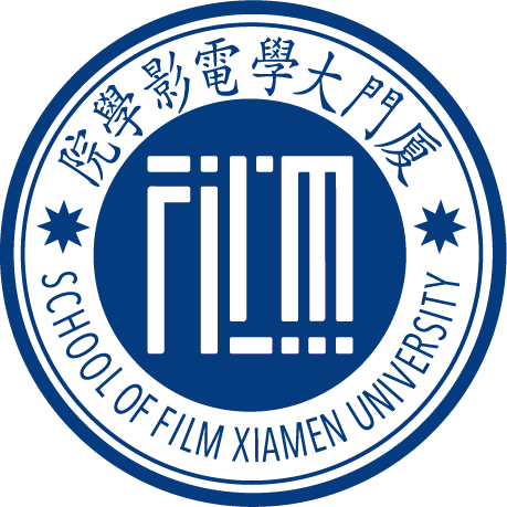 院徽中心图案以“电影”英文FILM一词(亦为胶片的英文)与计算机视觉的像素点相结合,构成传统电影胶片与数字科技视觉融合的形象,体现厦门大学电影学院艺术传统与现代科技兼容并蓄、跨界传承的理念