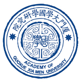 院徽中心采用秦汉瓦当图形和小篆字体,旨在突出国学学科悠久的学术传承和深厚的文化积淀。院徽下方的“国学”英文翻译,采用目前较为通用的专用名词以汉语拼音直译的方式,以避免“汉学”等词义不准确的翻译方式。