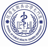 徽标中心是“蛇杖”、“P H”字母和橄榄枝,“蛇杖”是世界医学的标志,象征着公共卫生学院对社会卫生与健康的关注;“P H”既是“Public Health”的缩写,又像一本打开的书,象征着公共卫生学院师生拼搏创新、追求卓越的精神;橄榄枝象征和平与健康,代表了公共卫生事业对和平和健康的追求。